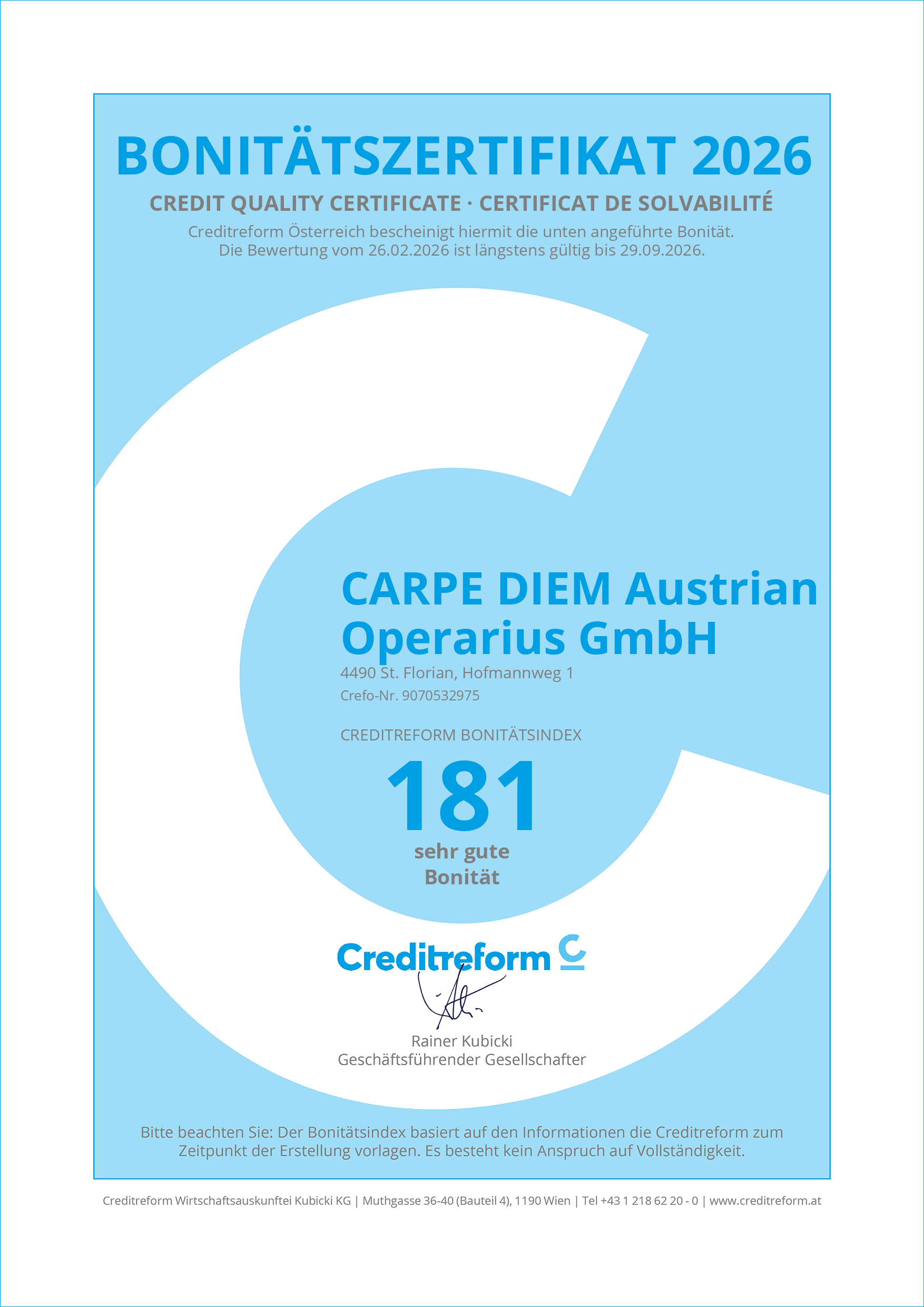Bonitätszertifikat 2026